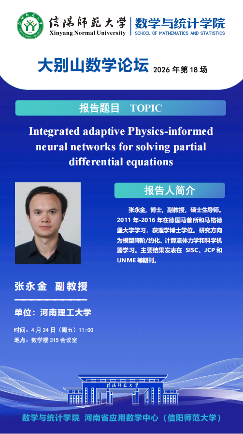 大别山数学论坛:河南理工大学张永金副教授——Integrated adaptive Physics-informed neural networks for solving partial differential equations